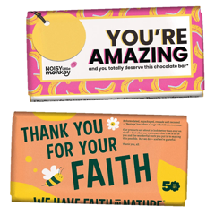 Perfect for corporate gifts, event giveaways, or client appreciation, these sustainable treats don't just taste good—they do good. Recipients will remember your thoughtfulness long after the chocolate is gone. Give your brand the sweet spotlight it deserves with Tony's Chocolonely customized chocolate bars!