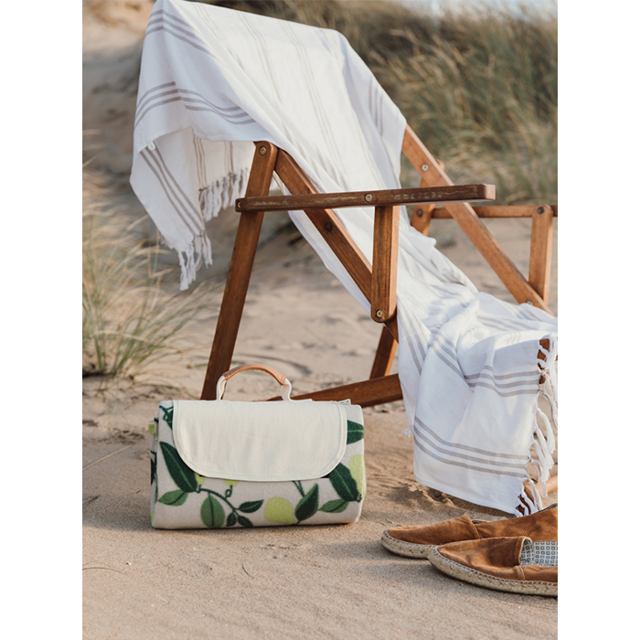 Picnic blanket in soft fleece with cotton canvas and details in PU. Clever construction makes it easy to fold up and take with you. The fleece is crafted GRS certified recycled PET. The back is made in PEVA, which repels water. Certified by GRS (Global Recycled Standard), GRS certification guarantees that the entire supply chain of the recycled materials is certified. The total recycled content is based on the overall product weight. This product contains 51% GRS recycled fleece.